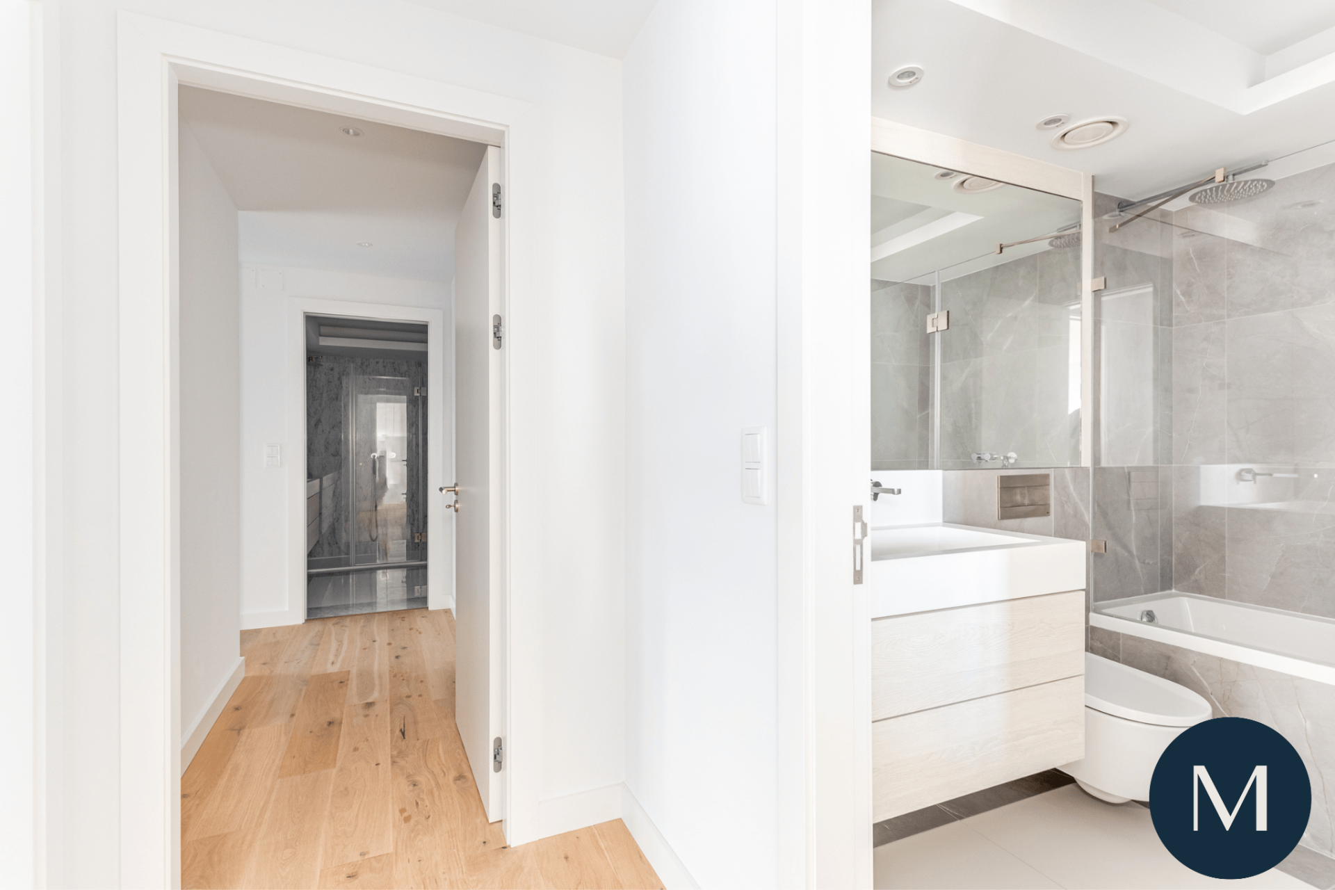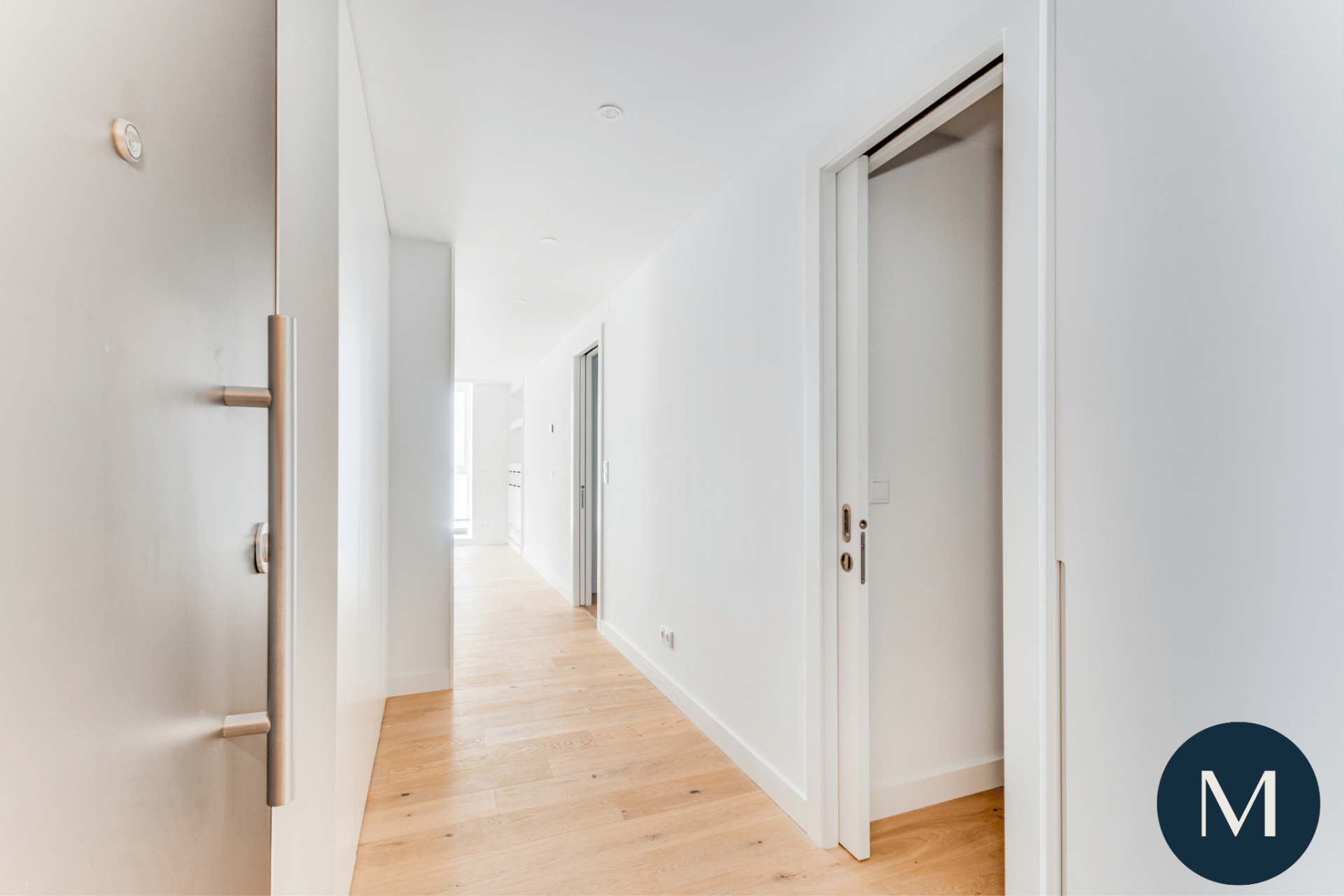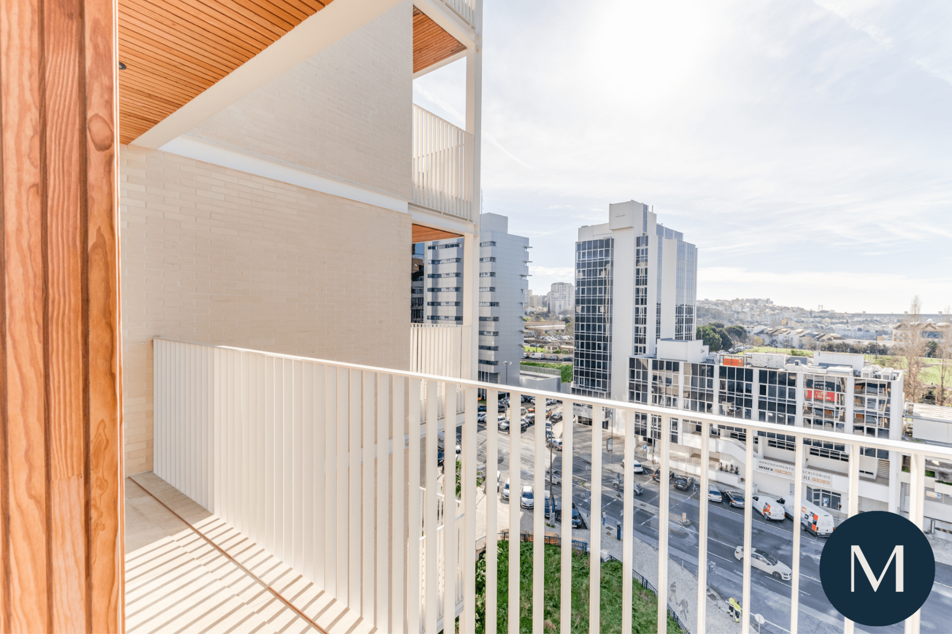Feel relaxed on the spacious balcony while enjoying the view of Lisbon’s center and the many green areas surrounding the building. The apartment also has a parking space with electric car charging and a storage area for your convenience.
